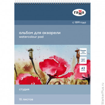 Альбом для акварели 15л., А3, на спирали Гамма "Студия", 200г/м2, среднее зерно
