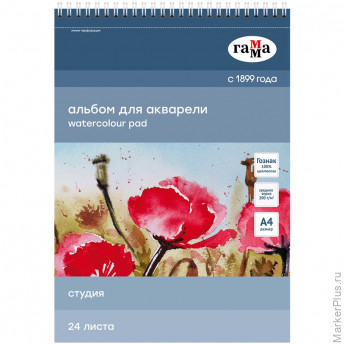 Альбом для акварели 24л., А4, на спирали Гамма "Студия", 200г/м2, среднее зерно, перфорация на отрыв
